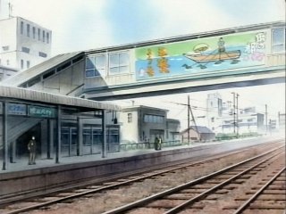 也是漫畫第一話男主角回到三次市那邊的一個畫面,剪票口一出去的地面