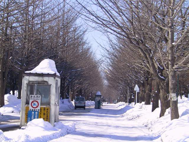 北海道大學的某一個門...一整排樹在春天或夏天應該很美麗...